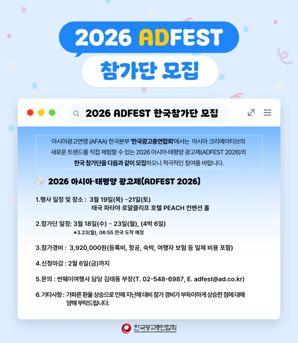 [한국광고총연합회] 2026 ADFEST 한국참가단 모집