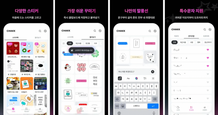 여러분은 인스타그램 스토리를 꾸미는 ‘스꾸’를 위해 어디까지 해보셨나요? 에디터는 스꾸용 스티커를 받기 위해 각종 계정을 팔로우하고 댓글 미션을 수행하곤 했는데요. 그렇게 어렵게 받은 스티커들이 정작 폰 갤러리 여기저기에 흩어져 쓰지 않게 된 적이 한두 번이 아니랍니다. 이런 불편을 대폭 줄여주면서 인기를 얻은 앱이 바로 ‘?(CHAKK)’입니다. 말풍선, 특수문자, 무드별 스티커까지 한 곳에 모아둔 앱으로, 2025년 11월 기준 앱스토어 사진 및 비디어 부문 유료 앱 2위를 기록할 만큼 Z세대 사이에서 꾸준한 인기를 끌고 있어요.