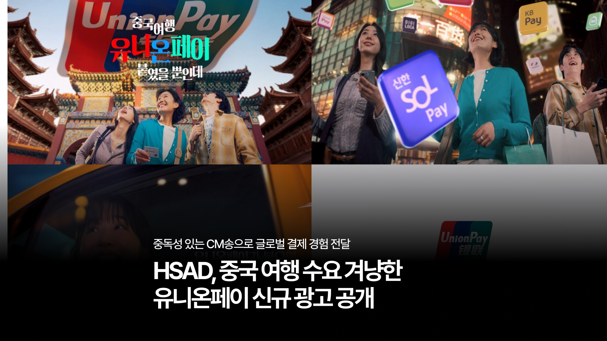 한편, HSAD와 유니온페이는 이번 중국 여행 컨셉의 캠페인에 이어 상반기 중 글로벌 해외 여행 컨셉의 캠페인도 공개할 예정입니다.