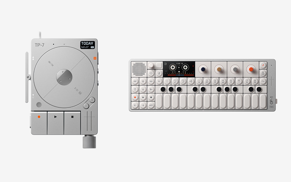 디지털 기술에 테이프 레코더의 물리적 회전 원리를 얹은 녹음기 ‘TP-7’(좌), 손으로 조작하는 감각에 집중한 신디사이저 ‘OP-1 Field’(우)