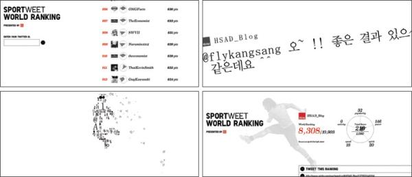 일단 나의 랭킹을 알아보는 것이니 재미삼아 아이디를 입력하게 됩니다. 게다가 내가 쓴 글들이 나오니 더욱 관심을 가지게 되죠. 그 사이에 유니클로 스포츠웨어는 멋지게 등장합니다. 웬만한 TV-CF보다 훨씬 아이디어가 돋보이는 등장입니다. 유니클로는 TV에서도 트위터에서도 온라인에서도…… 어디로 자리를 옮겨도 위트를 잃지 않습니다.