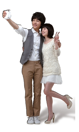 스토리가 어느 정도 정리되고 나니 자연스럽게 모델로 관심이 옮겨갔다. 요즘 20대 여성이 가장 좋아하는 모델은 누구일까? 인기 드라마 <성균관 스캔들>의 꽃미남 선비 ‘구용하’로 일약 스타가 된 송중기가 가장 먼저 떠올랐다. 제작팀의 모든 여직원이 만장일치로 송중기를 외쳤고, 광고주 쪽의 여심도 다르지 않아 진정한 의미의 ‘해피투게더’를 실현했다는 후문이다. 실제 송중기는 성균관대에 재학 중인 ‘엄친아’로 외모뿐 아니라 성실하고 단정한 매너가 인스탁스 모델이 되기에 부족함이 없었다. 그에 어울릴 만한 여친으로는 깜찍하고 사랑스러운 외모의 김별이 캐스팅되어 비주얼상의 찰떡궁합을 완성했다. 이제 남은 것은 마지막 관문, 촬영이다.