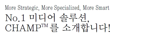 CHAMP는 계속 진보하고 진화하는 전략 시스템이다. 시간이 갈수록 더욱 빠르게 변화하는 미디어 환경에 대응하고 한발 앞선 미디어 서비스를 제공하기 위해 미디어디자인팀은 지속적인 R&D를 통해 새로운 전략을 지원할 수 있는 방법론을 개발하고, 이를 제일기획만의 노하우로 빠르게 적용하기 위해 CHAMP를 끊임없이 변화시킬 것이다.