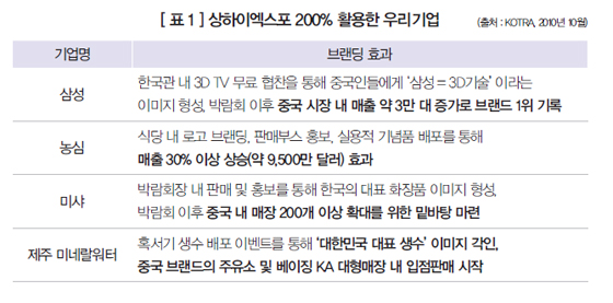 먼저 기업들이 박람회에 참여하는 가장 기본적인 방식이 바로 기업관 참여를 통한 브랜딩이다. 기업이 전하고자 하는 메시지를 건축, 전시, 이벤트, 운영 등에 통합적으로 담아냄으로써 박람회를 방문한 수백만의 관람객들과 직접 소통하고, 메시지를 전달할 수 있다는 점에서 일반적인 이벤트와는 다른 임팩트가 있다고 보인다. 그러한 이유로 현대자동차, 삼성, 포스코, LG, GS, SK, 롯데 이상 국내를 대표하는 7개 기업이 막대한 예산을 들여가면서 기업관에 적극 참여하고 있는 것이다.