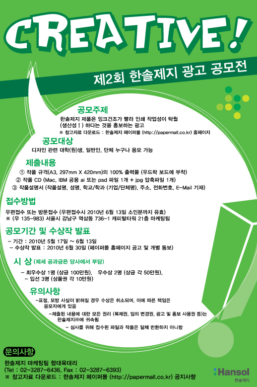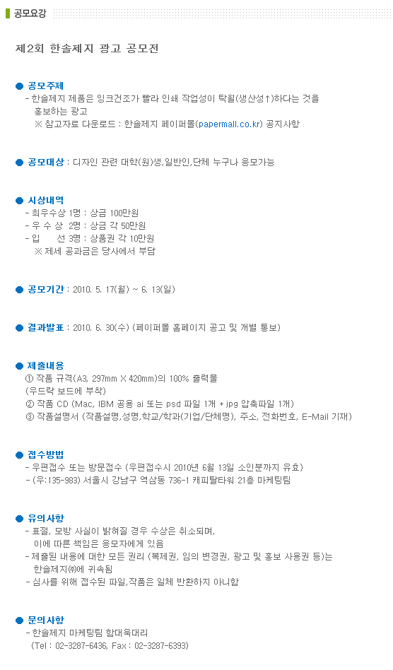 제2회 한솔제지 광고 공모전(~6/13)