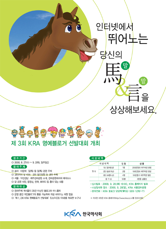 - 대회 입상자는 향후 KRA 인터넷 홍보대사로 위촉됩니다.