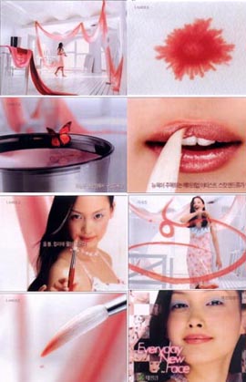 이 광고를 제작한 ''BBDO동방''(대표:박재범)은 ''씻겨진 색(washed-color)''이라는 컬러의 특징을 마치 수채화처럼 여자의 얼굴을 맑고 투명하게 해준다는 것으로 해석, 광고의 컨셉트를 ''물오른 컬러''로 잡았다. 화장품에서 ''보습''의 역할에 그쳤던 ''물''의 개념을 컬러로 확대 해석해낸 순간이다.