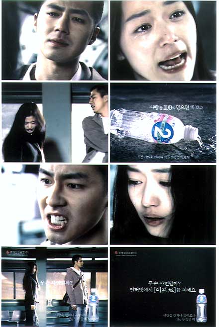 자막으로 “사랑은 언제나 목마르다, 2%부족할 때”라는 메시지가 전달된다. 이어 “당신은 누구 편입니까?”라는 메시지가 보여지고 인터넷 동영상은 끝난다.인터넷 동영상을 보고 나면, TV-CM의 궁금증이 말끔히 해소된다. 매체끼리 서로 상호작용을 하며 시너지 효과를 극대화시키고 있는 것이다.