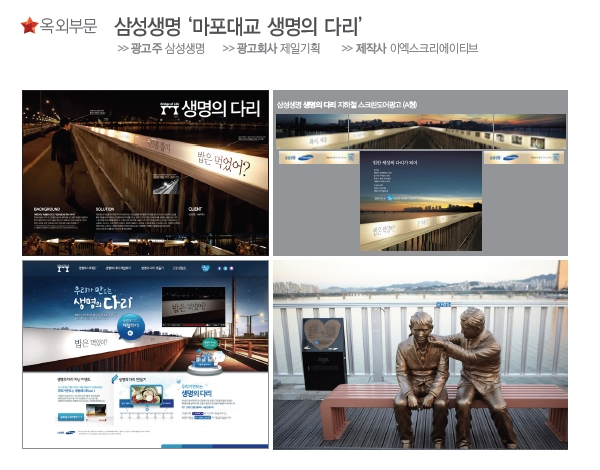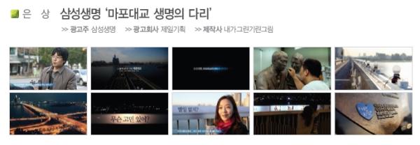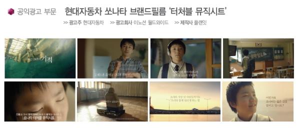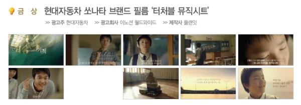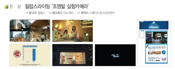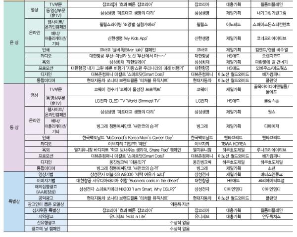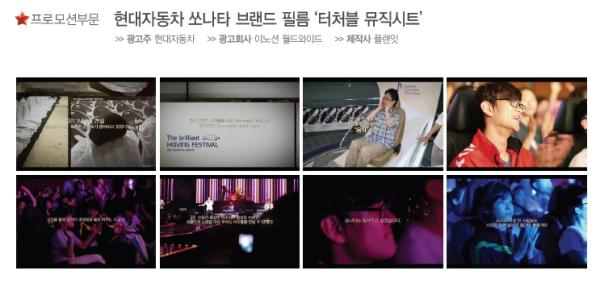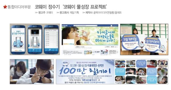 △통합미디어 부문 <코웨이 ‘코웨이 물성장 프로젝트’ 캠페인 (제일기획)>은 실제로 6개월 동안 청소년들에게 물마시기 습관을 길러주고 그 관찰 과정과 결과를 통해 깨끗한 물의 중요성을 진정성 있게 제시함으로써 큰 호응을 얻었다. △프로모션 부문 <현대자동차 쏘나타 브랜드필름 ‘터처블 뮤직시트’ 편(이노션 월드와이드)>는 소리가 아닌 진동으로 음악을 전달하는 특별한 자동차 시트를 통해, 실제 청각장애인 아이가 태어나서 처음으로 음악을 접하는 과정을 감동적으로 담아 내 큰 호응을 얻었다.