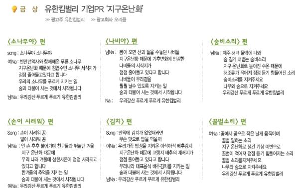 본심 심사위원장을 맡은 윤 각 서강대 교수(한국광고학회 회장)는 심사평에서 “올해 수상작들은 고객이 참여한 캠페인들이 대거 눈에 띄었고, 이러한 캠페인을 통해 광고인들이 우리사회에 긍정적인 변화를 유도하는데 한 몫을 담당하고 있다”고 설명했다.