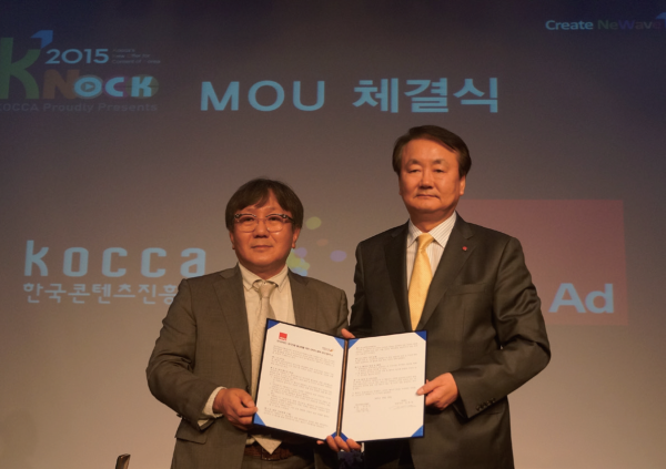 HS애드(대표 김종립)는 지난 9월 10일(목) 코엑스에 열린 한국콘텐츠진흥원 주최 ‘글로벌 빅킬러 콘텐츠’ 육성 프로그램 ‘K노크(Kocca’s New Offer for Content of Korea) 2015’에서 한국콘텐츠진흥원과 ‘한국 콘텐츠 중국 진출 활성화를 위한 전략적 협력’에 따른 업무협약을 체결했다. 이번 업무협약 체결에 따라 한국콘텐츠진흥원은 진흥원 측에서 제작 지원한 콘텐츠를 HS애드에 추천, 제공하기로 했다.