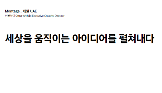 오마르 알자비(Omar Al-Jabi) ECD는 제일 UAE에 오기 전 희망과 꿈에 부푼 호기심 많고, 고집 센 남자였다. 제일 UAE 입사 전후 담당했던 주요 클라이언트에는 삼성전자, 캠핀스키 호텔 MENA, 코카콜라, 르노, 스타우드 호텔 & 리조트, 버진 모바일, 이케아, 바이어스트로프, 아부다비 미디어 컴퍼니 등이 있다. 제일 UAE에 몸담은 지 3년이 지난 지금도 호기심 많고 고집 센 남자임에는 변함이 없으나, 더 많은 희망과 꿈을 품게 됐다고 한다.