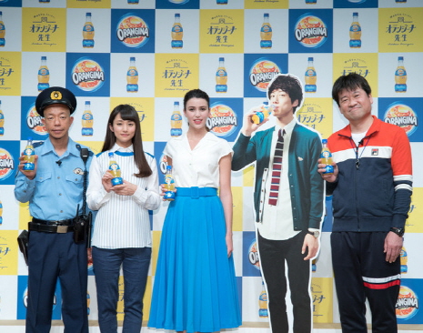 산토리 식품은 과즙을 담은 탄산음료 ‘오렌지나’의 뉴TV CM을 7월 4일부터 방송했다. 이번 CM의 메인 모델로는 프랑스 배우 살로메 드 마트(Salomé de Maat), 배우 기무라 아야노(木村文乃), 사카구치 겐타로(坂口健太?), 다케다 테츠야(武田?矢), 사토 지로(佐藤二朗), 코미디언 코토우게 에이지(小峠英二) 등을 기용했다. 방송에 앞서 지난 1일, 도쿄의 시부야 히카리에에서 CM발표회를 진행했으며, 식품사업본부의 야나이 신이치로(柳井?一?) 부장은 프랑스의 오렌지나를 인수한 후 5년째를 맞이한 오렌지나는 판매도 호조이고, 2015년 발매한 ‘레몬 지나’도 호평이라고 설명했다. 금년은 오렌지나의 리뉴얼이나 레몬 지나를 쇄신한 ‘허니 레몬 지나’ 발매 등 새로운 단계를 시행한다고 발표했다. 더불어, 커뮤니케이션도 쇄신하여, 미국 배우 리처드 기어를 메인 모델로 기용하였으며, 좋은 평가를 받은 CM시리즈 ‘미스터는 괴로워’도 뉴시리즈로 변경한다는 말을 하며, ‘더욱더 사랑받는 브랜드를 목표로 하고 있다’라고 인사말을 했다. 이어서, CM ‘선생님 등장’, ‘사람으로서’ 두 편 상영 후, 스테이지에는 살로메 드 마트, 기무라 아야노(木村文乃), 사토 지로(佐藤二朗), 코토우게 에이지(小峠英二) 등 4명이 등장했다. 이번 CM시리즈는 어떤 섬에 있는 한 학교를 무대로 하여, 프랑스인 신입 여선생님 오렌지나 선생님(살로메 드 마트)과 개성이 풍부한 거리 사람들과의 교류를 아름다운 자연을 배경으로 그린 것이다. 동료 선생님 역을 맡은 기무라 아야노(木村文乃 영어 선생님)나 사카구치 겐타로(坂口健太? 고문), 사토 지로(佐藤二朗 체육 선생님)가, 다케다 테츠야(武田?矢)는 교장 선생님 역할을 맡았다. 코토우게 에이지(小峠英二)는 파출소의 경찰관역이다. 살로메 드 마트는 “이번 촬영 때문에 일본에 올 수 있었고, 촬영은 훌륭한 체험이 되었습니다.”라고 말하며, 다른 출연자들도 촬영지의 아름다움에 대해 칭찬을 아끼지 않았다. 살로메 드 마트의 인상에 대해서는 ‘올바른 생활을 할 것 같은 눈빛과 웃는 얼굴이 귀엽다’나 ‘사람을 끌어당기는 매력이 있다’ 등 호감도가 매우 높으며, 촬영의 중간 중간 쉬는 시간에는 서투른 영어로 수다를 즐긴 에피소드도 소개되어, 촬영팀의 단합에 대해서도 소개했다. 행사장 단상에는 학교의 교실세트가 만들어져 있었고, ‘오렌지나 선생님에 의한 프랑스어 특별 수업’을 했다. 사토 지로(佐藤二朗)와 코토우게 에이지(小峠英二)가 ‘저와 사귀어 주세요’라고 하는 의미의 프랑스어를 어느 쪽이 능숙하게 말할 수 있을까로 대결한다. 결국 승리한 사토 지로(佐藤二朗)는 살로메 드 마트와 오렌지나로 건배한다. 코토우게 에이지(小峠英二)의 프랑스어에 대한 평가는 ‘무슨 말을 하고 있는지 잘 모르겠다’라고 좋지 않은 평가를 받았다. CM에 대해 기무라 아야노(木村文乃)는 ‘모노가타리(일본 고유의 산문 문학 형태)로서도 즐거움을 주었다’, 사토 지로(佐藤二朗)는 ‘오렌지나와 같이 산뜻했다’ 등 호평을 했다.